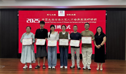 为深度推动漆艺非遗的活态传承与创新发展,8月18至25日,beat365官网毛德龙、王铎两位教师受邀赴西安生漆研究所,参与由该所与陕西科技大学联合主办的第六届中国生漆与漆工艺人才高级研修班,在为期8天的沉浸式学习中,围绕生漆科研与漆艺创作开深度研修。