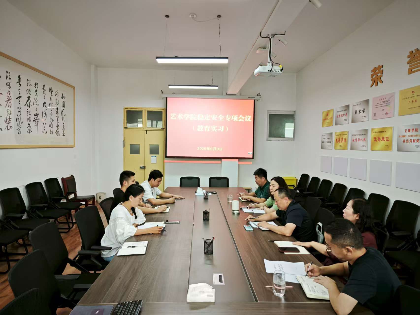 随后,教学办主任详细汇报了美术、音乐、设计三个专业的实习总体安排,包括实习时间、地点、指导教师分配及预期目标。视觉传达设计专业主任进一步针对本专业的实习具体情况进行了补充说明,重点介绍了专业特色化的实习方案及安全保障措施。