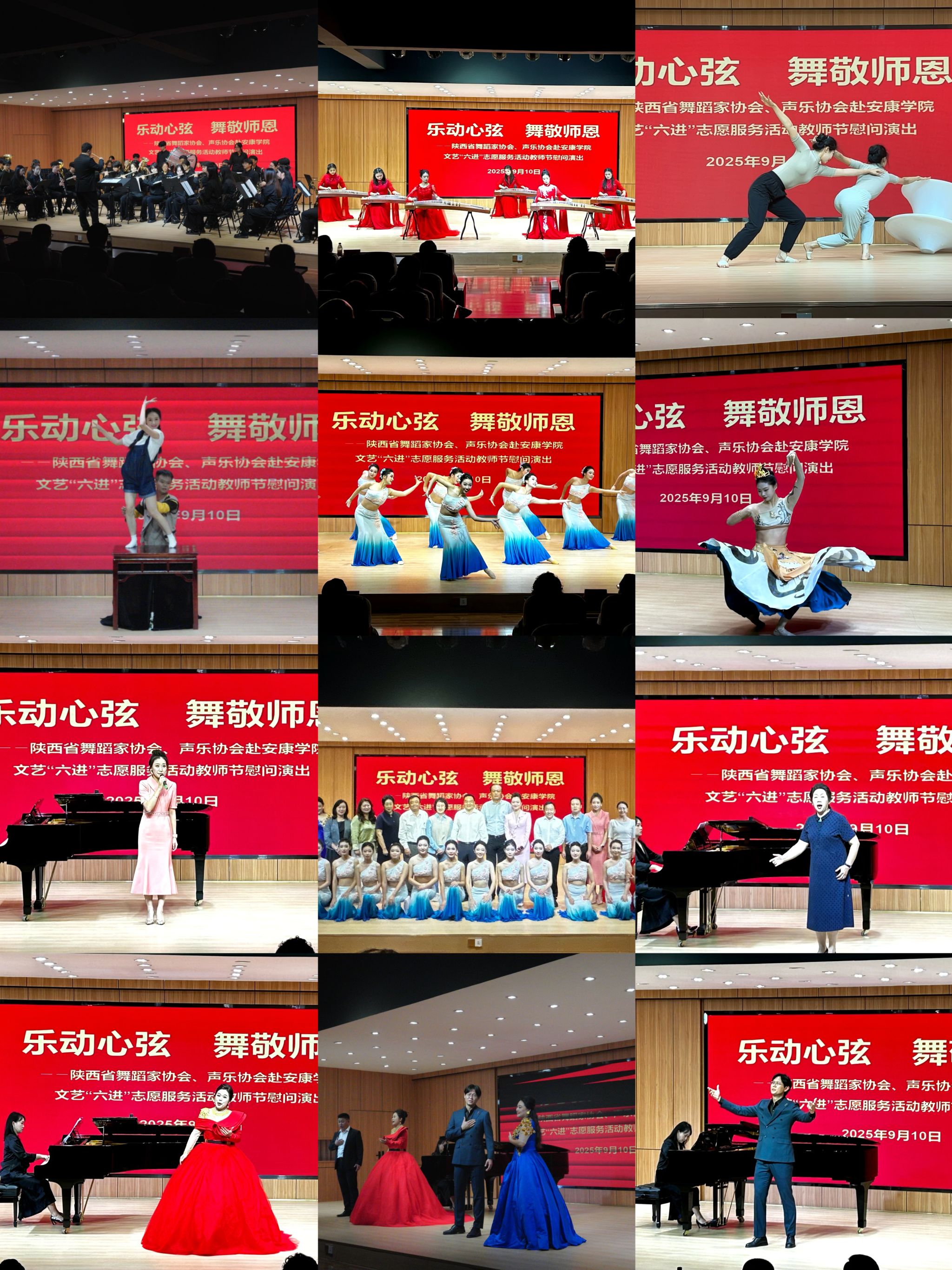作为本次活动的重要参与方,beat365正版唯一官网必一充分发挥学科专业优势与人才资源优势,全力配合活动开展。学院组织专业教师与优秀学生代表,联合陕西省舞协、安康市舞协等多方文艺力量,共同打磨演出内容。在beat365正版唯一官网必一校内演出现场,学院师生与歌唱家安金玉、喻红,陕西师范大学舞蹈系等文艺工作者同台,通过舞蹈、歌唱等多元艺术形式,将对教师的感恩之情融入每一个动作、每一段旋律,精湛的表演赢得现场师生阵阵掌声,为校园营造了温馨浓厚的节日氛围。