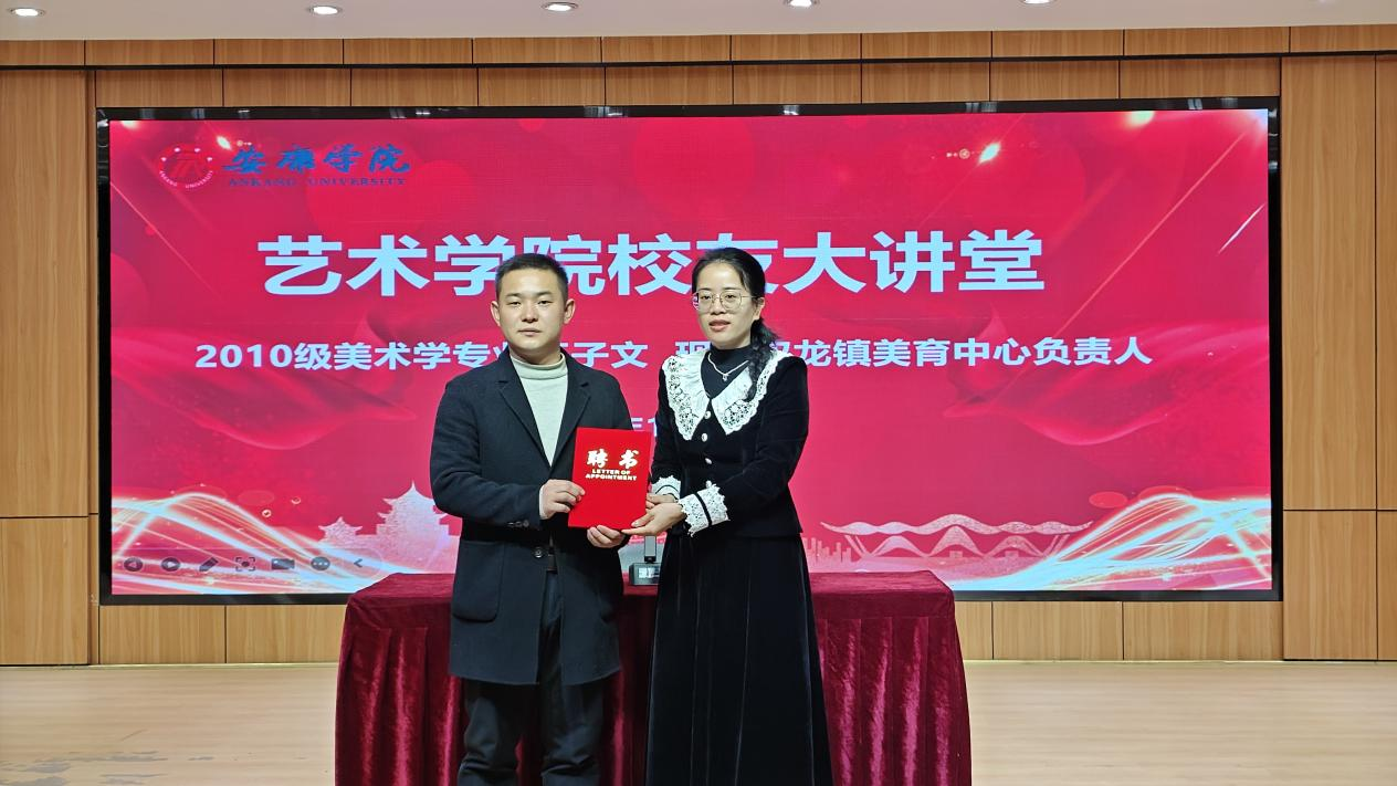 为表彰汪子文校友在基层美育领域的突出贡献,搭建长效合作平台,beat365官网特为其颁发beat365正版唯一官网必一兼职教师聘书,聘期内将为学子提供成长指导与实践支持。汪子文校友表示,将以此次受聘为新起点,持续助力母校人才培养,搭建基层实践桥梁。