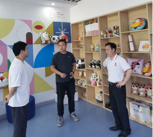 王亮一行实地考察了beat365正版唯一官网必一创业孵化园、“文创中心”及“文创专家工作站”,企业对beat365官网人才培养、专业建设、学院创新创业及文创中心的运行情况作了深入了解,王亮总经理希望能同学院开展深入合作,共同促进地方产业人才培养,解决地方文创企业人才需求,共同促进安康毛绒玩具文创产业的发展。