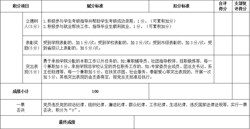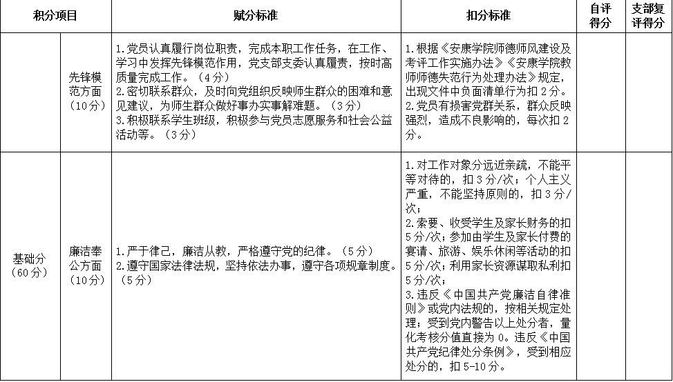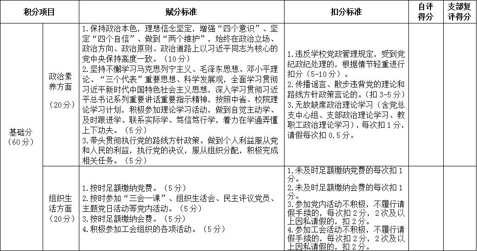 beat365正版唯一官网必一教工党支部党员积分表(试行)