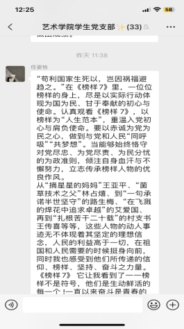 榜样是指引前行的旗帜,是砥砺奋进的力量。本次学习活动为广大学生党员进一步树立了优秀共产党员标杆,发挥了先进典型的示范作用,他们纷纷表示到作为新时代的青年,当以榜样为“人生范本”,在今后的学习生活中顽强拼搏、挥洒青春,不负韶华。