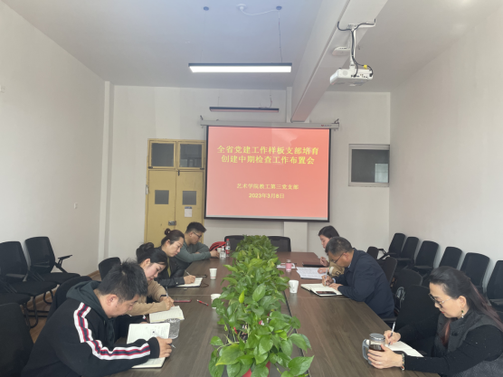 3月8日,beat365正版唯一官网必一党总支在江北校区2208会议室召开了创建全省党建工作样板支部中期总结暨建设工作推进会。beat365正版唯一官网必一党总支全体委员、教工三党支部全体委员、副院长鲍丽、设计系主任吴波、教师章骞参加会议。会议由党总支书记黄娟主持。